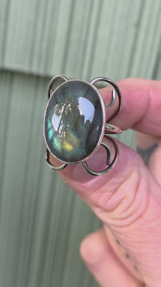 CURLING HEARTS Ring - (size 9.5/9.75) Labradorite + Sterling Silver