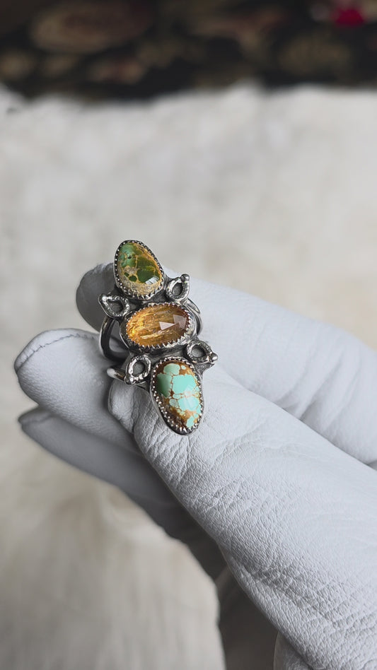 Ring - (size 6.5) Polychrome Stone Mountain Turquoise and Imperial Topaz + All Sterling Silver
