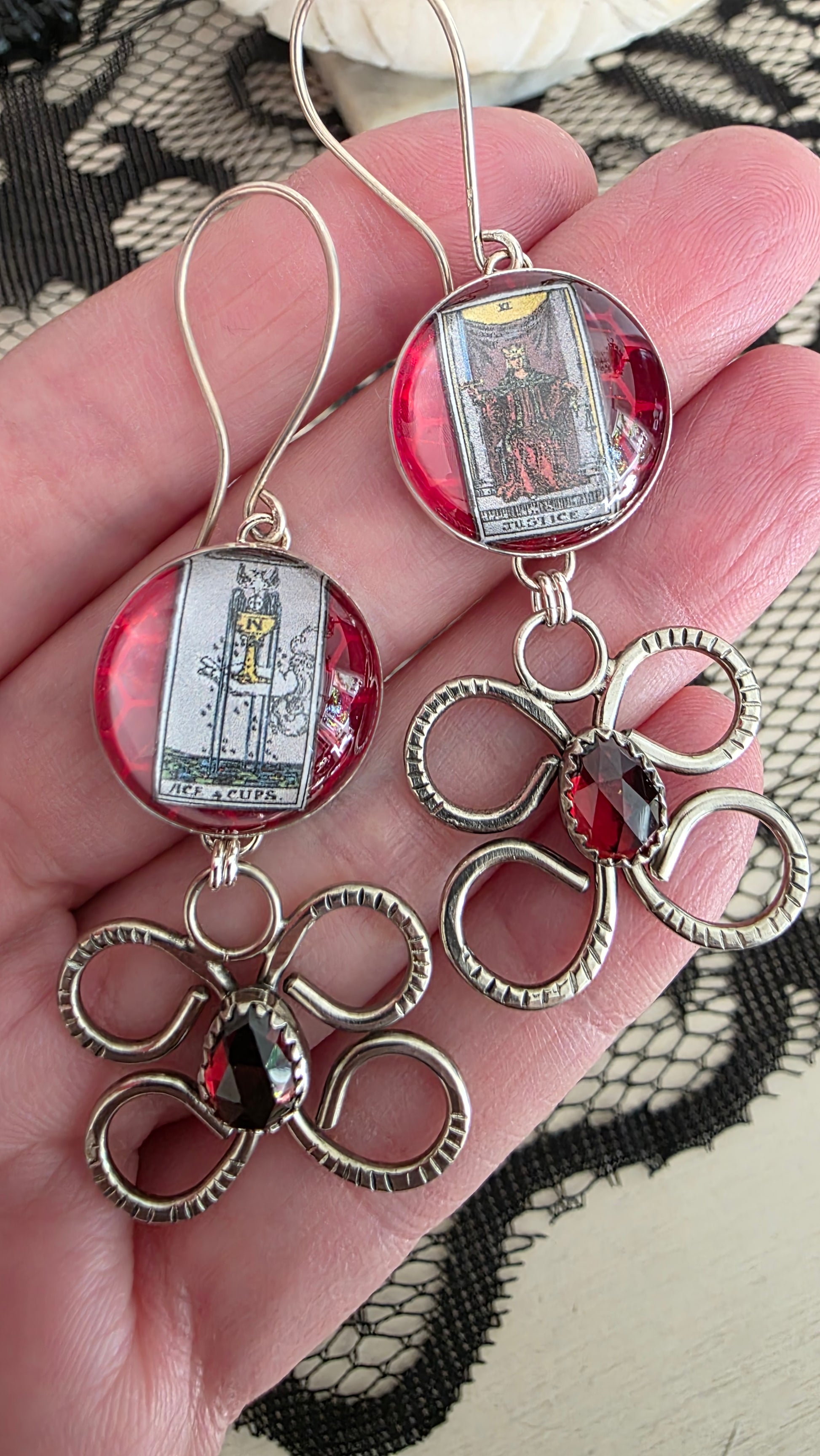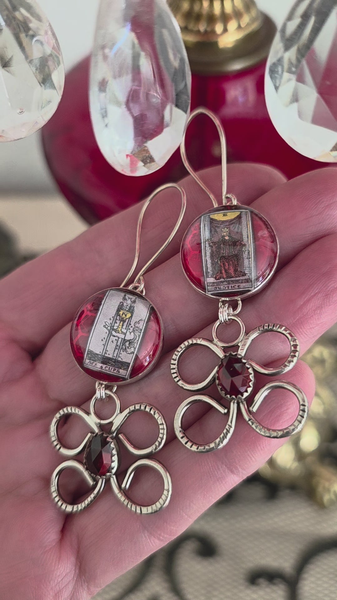 JUSTICE Tarot Earrings - Mozambique Garnet and Sterling Silver
