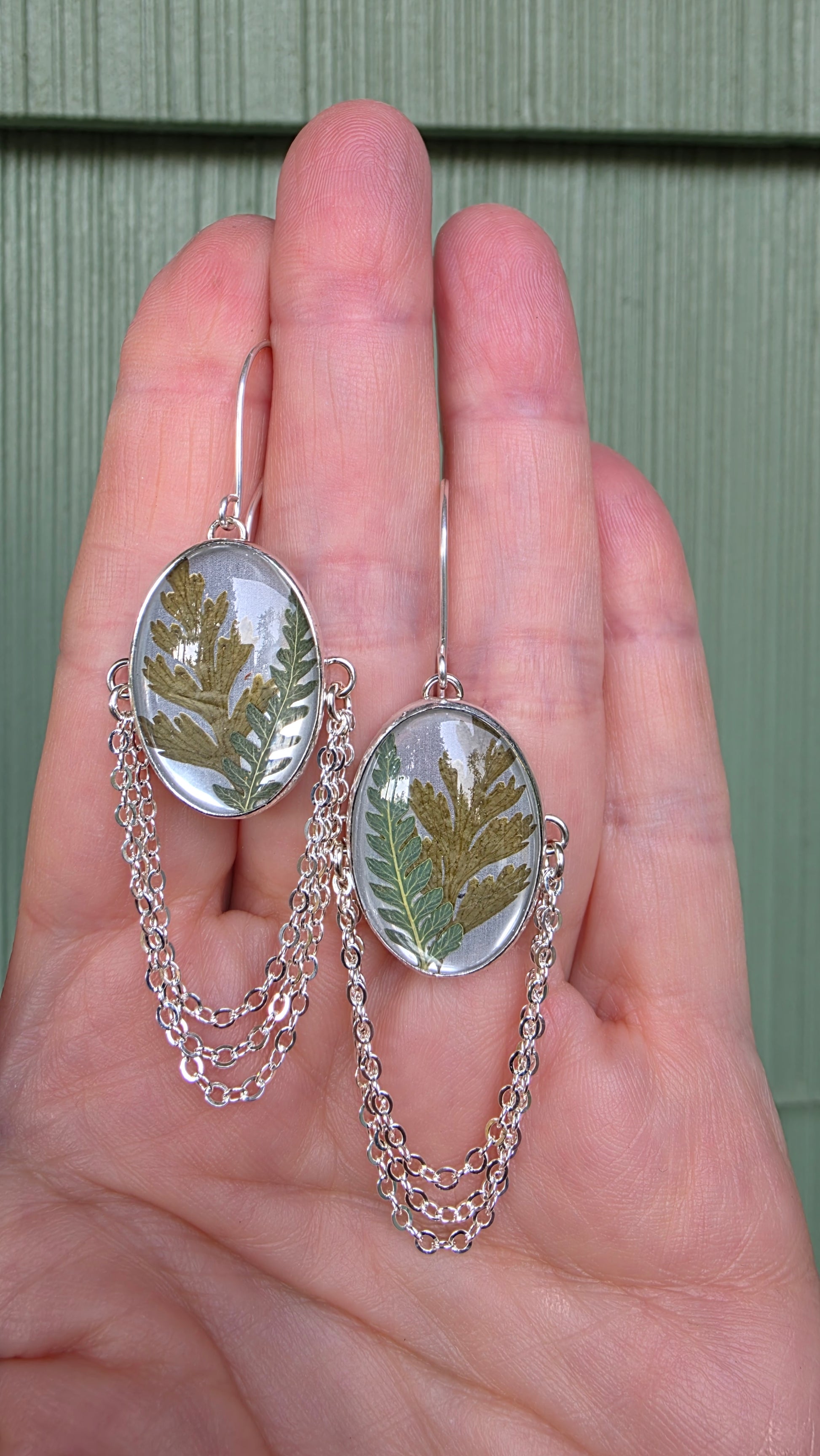 ENCAPSULATED FERN Earrings - Fine and Sterling Silver