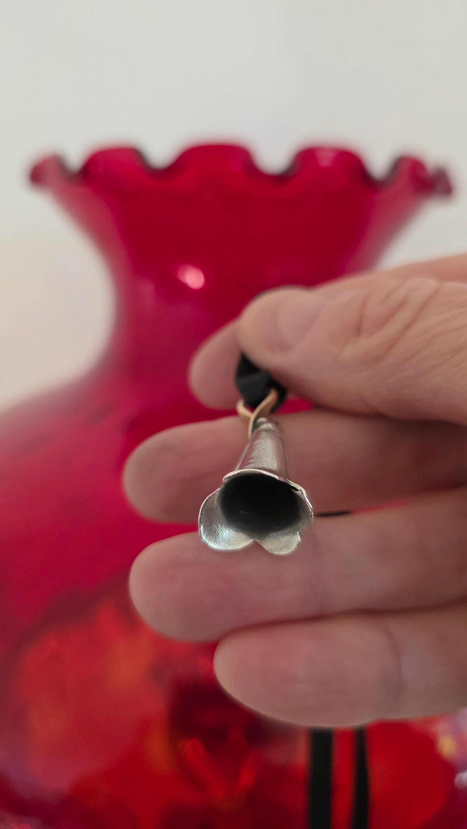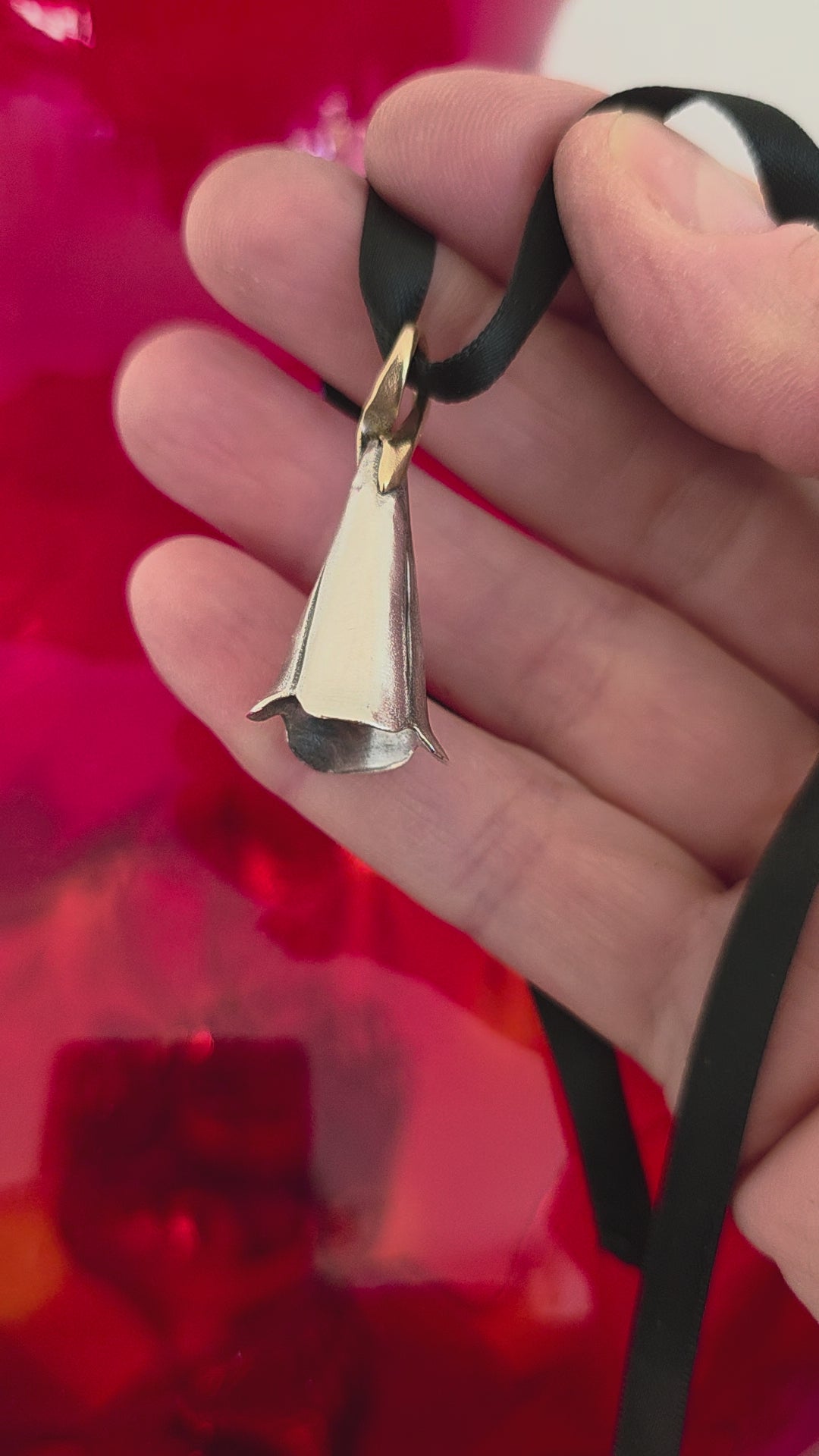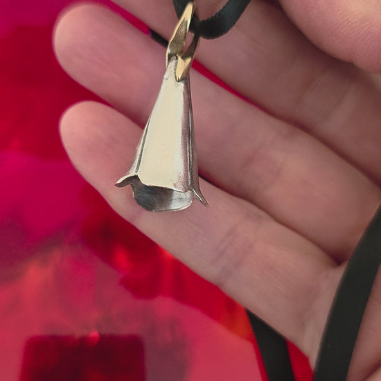 Entirely hand fabricated foxglove bell flower in sterling silver with jeweler's brass loop bail at the top. Made one-at-a-time on my forming anvil and each is unique.