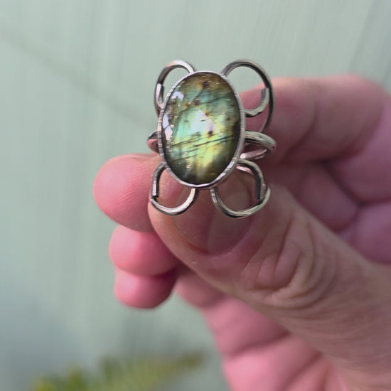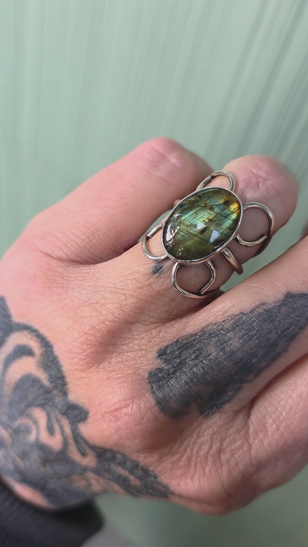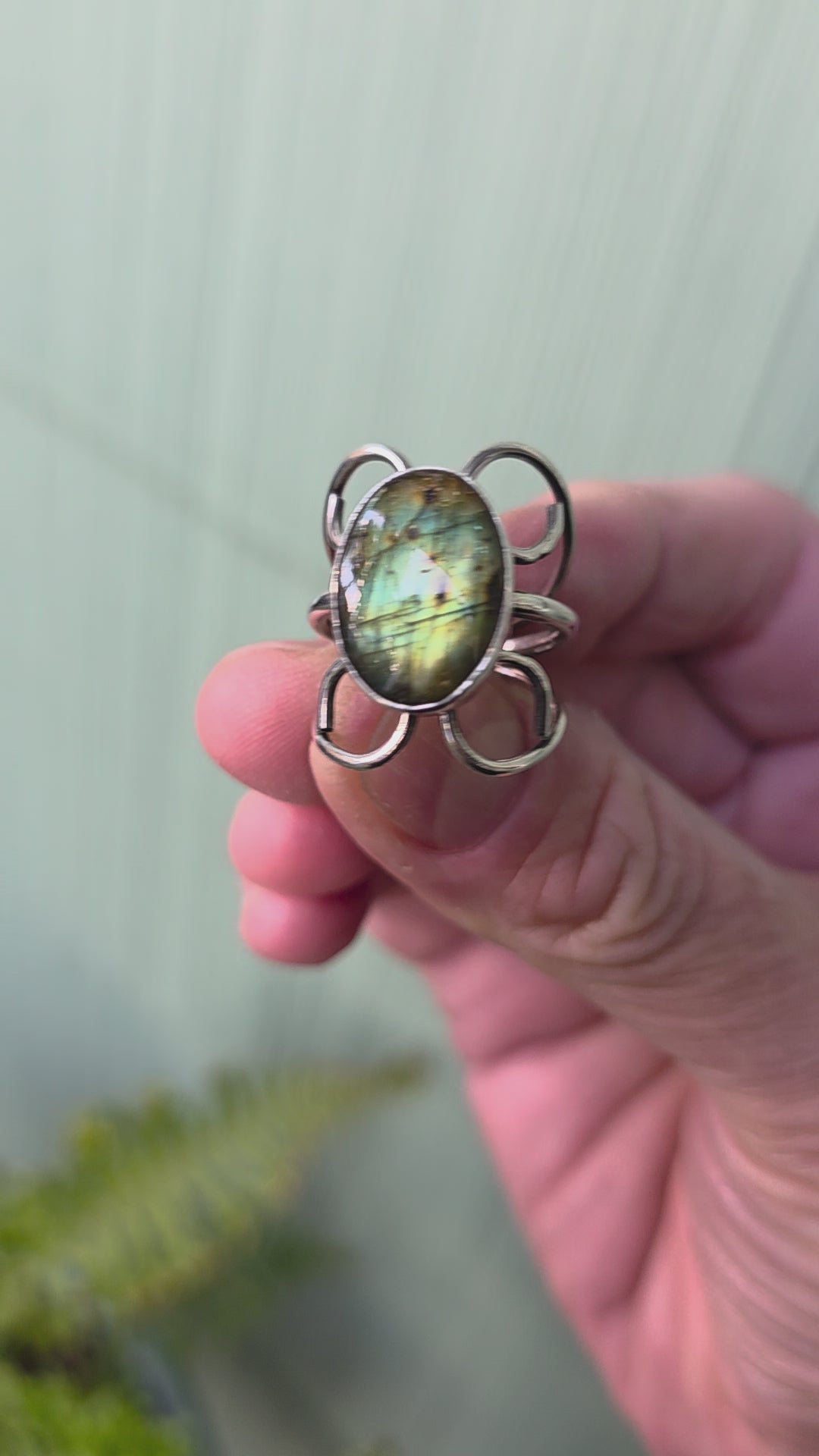 CURLING HEARTS Ring - (size 8) Labradorite + Sterling Silver